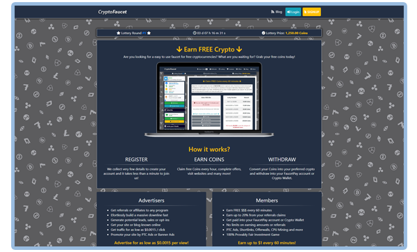 CryptoFaucet is a new type of cryptocurrencies faucet which brings plenty of different features togheter into a complete system. This system was designed to be attractive and easy to use. With plenty of different features this system was designed to bring revenue and promote itself in a short time. Some of main features of this system are listed bellow, but to see this system working, we invite you to check the demo. One of the most important parts of this script is that, even if is a faucet and it does proccess withdrawals in crypto, user is rewarded in-site with coins which are calculated on USD, keeping you safe from losing money because of crypto prices volatility.